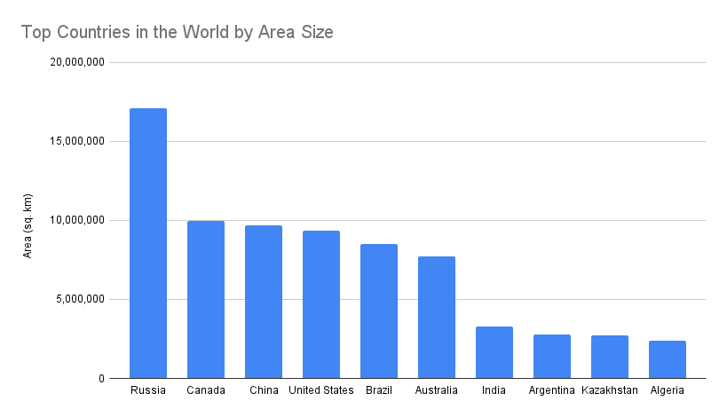In this excercise we will build a bar chart to see the top countries in the world by their area size.